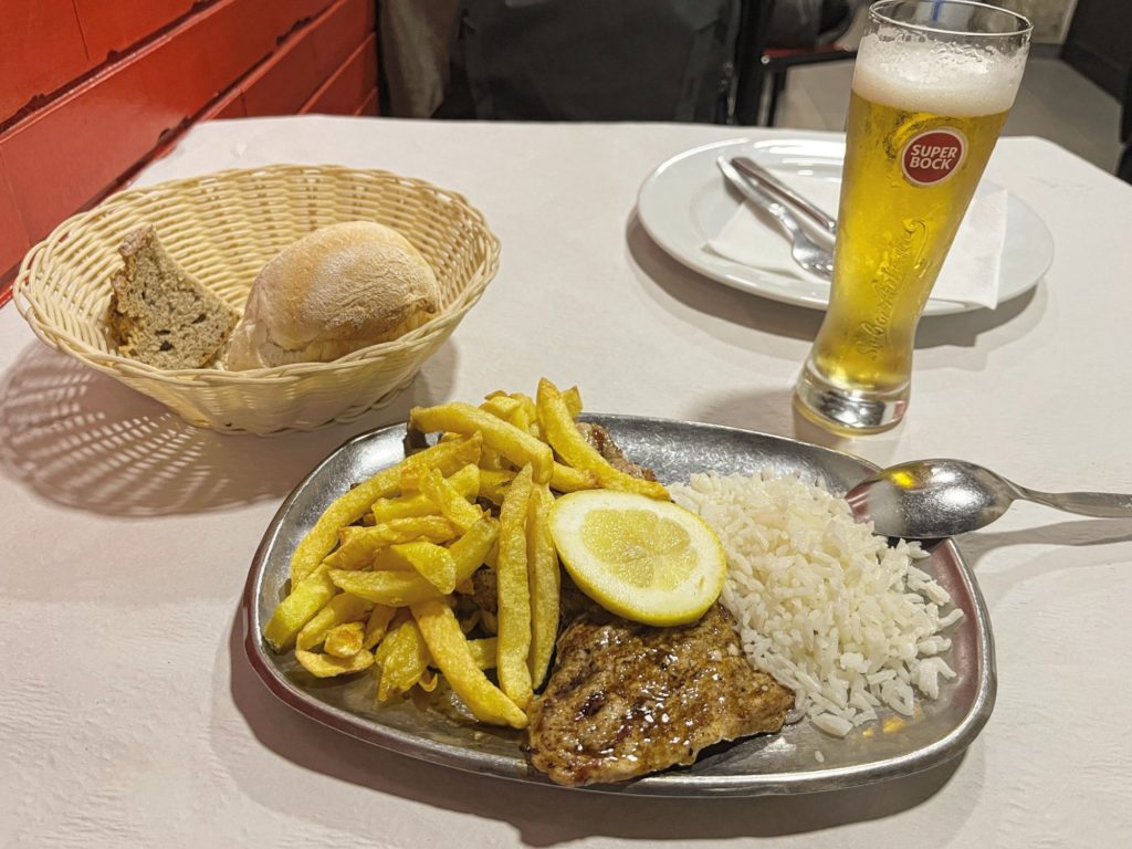 ハーフでも十分すぎる量。飲み物はもちろん大好きなビール😉お肉は肉厚だけど柔らかくて美味しかった〜。ご飯との相性も抜群!ポテトも見た目はうーんですがどんどん進みます笑パンはメニューと一緒に持ってこられたものですがお腹いっぱいだったので手はつけず…食べなかったからかお会計には含まれてませんでした。これだけ食べてビールも飲んで6.5€!安すぎる!食べ終わる頃にはお店は満員で何組か待ってる人もいました。周りのお客さんを見ているとフランセビージャを食べてる人が多かったです。私もここのも食べてみたかったなぁ〜支払いは現金のみなので注意です!